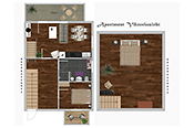 - 1 modernes Duschbad (Kosmetikspiegel, Fön)